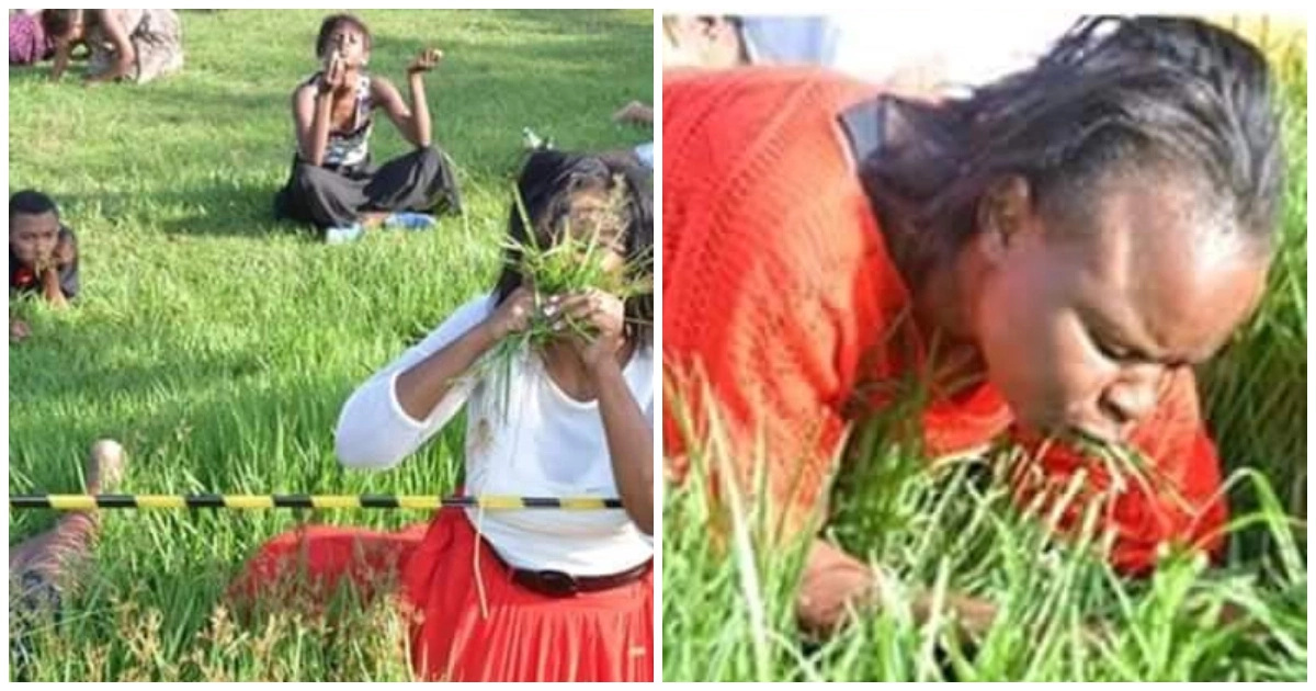 Under the instruction of Pastor Lesego Daniel of Rabboni Centre Ministries dozens of followers dropped to the floor to eat the grass at his ministry in Garankuwa, north of Pretoria after being told it will ‘bring them closer to God.’